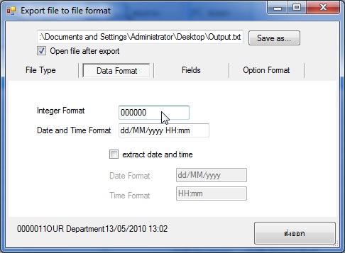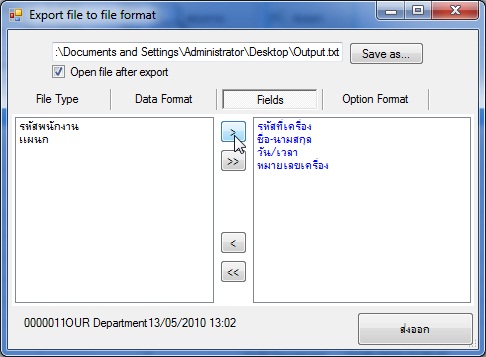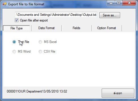 หากมีการนำไปใช้เป็นข้อมูลตั้งต้นสำหรับโปรแกรมอื่น อย่างเช่น โปรแกรมคำนวนเงินเดือน(Payroll) คลิกปุ่ม ส่งออก2.1 เลือก Format ที่ต้องการส่งออกข้อมูล