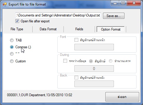 2.4 เลือก Option Format คือการเลือกรูปแบบสัญลักณ์ที่ต้องการแสดงระหว่างข้อมูล